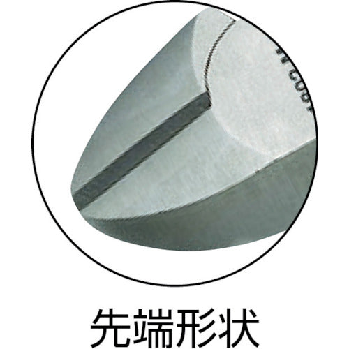 カタログ品番:1802M-22 特長:●ヘビーデューティーモデルです。●人間工学に基づいた掴みやすさ、力のかけ易さに優れたニッパです。●金属に接する強化樹脂(青)と手に接するソフト樹脂(黒)によりより安全で確実な作業をサポートします。 仕様:●全長(mm):180●切断能力(mm)ピアノ線:φ2.5●切断能力(mm)鉄線:φ3.5●強力刃 材質/仕上:●クロムバナジウム鋼(Cr-V)