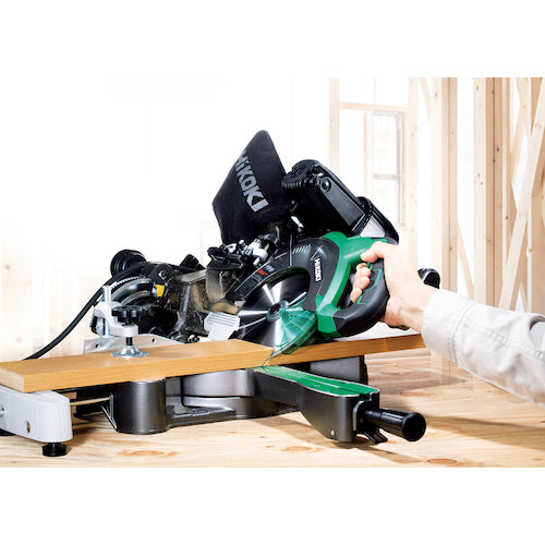 カタログ品番:C6RSHD-K 特長:●鋭い切れ味の【黒鯱】チップソーを標準付属したモデルです。●両傾斜切断可能です。●最大切断幅245mmフロア材も余裕で切断できます。●当て板使用で46×245mmの切断ができる深切り仕様です。●ツインベルト駆動で静断できます。●10kgの持ち運びやすい小型軽量ボディです。●トリプルボールベアリングを採用したスライド構造により、軽く滑らかな操作と高精度な切断が可能です。●照射範囲が広くて作業しやすい、内蔵式ツインLEDライト搭載です。●パイプ固定のスライド方式で、狭い現場や壁際でもワイドな切断が可能です。 用途:●各種木材の切断に。●各種合板、化粧板、軟質繊維板、ハードボード等の切断に。●アルミサッシの切断に。 仕様:●切込深度(mm):46●適合チップソー(mm)外径:155〜165●適合チップソー(mm)穴径:20●無負荷回転数(min[[の−1乗]]):4200●本体寸法(mm):幅405×奥行670×高さ465●切込深度(mm)45°:左傾斜45°/30 右傾斜45°/15●切込深度(mm)90°:46●適合チップソー(mm)刃厚:1.7〜1.9●外径(mm):165●定格電流(A):11●消費電力(W):1050●電源コード長さ(m):4.5●電圧(V):単相100●適用チップソー外径×穴径(mm):165×20●八寸切断●据付寸法:幅220mm×奥行242mm●直角切断寸法(高さ×幅):46mm×245mm●カーボンブラシ:No.21●レーザーマーカー付●内臓式ツインLEDライト搭載●ポジティブストップ搭載●木っ端巻き込み防止用ガード付 セット内容/付属品:●チップソー(刃数65)●ダストバッグ●ボックススパナ(10mm)●サイドハンドル●バイス組 注意:●日立工機(株)のブランドは、2018年10月「HiKOKI」に変わりました。