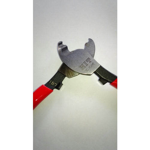 カタログ品番:SC20MT 特長:●特殊鋼の鍛造品で切れ味、耐久性を追求した商品です。 用途:●各種ケーブル線(鋼芯入りケーブル線は除く)の切断に。●電話工事のケーブル線の切断に。 仕様:●切断能力([[MM2]]):IV線38(直径11.4)●全長(mm):210●刃部硬度:HRC50〜55