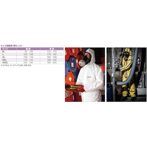 カタログ品番:4500101-XL 特長:●透湿度の高いSMS製防護服です。●頭部にフィットする立体的な構造のフードです。●袖口や足首、ウエストゴムの締まりが粉じんの付着を軽減します。 用途:●医療関連、製薬業用。●粉じん、粉体作業用。●アスベスト除去などに。 仕様:●色:白●サイズ:XL●適合身長(cm):182〜188●適合胸囲(cm):108〜116●タイプ:つなぎ服●使い捨てタイプ●JIS T 8115規格タイプ5〜6適合品(微粒子・ミスト防護用)●EN1149-1(静電気からの防護)●脱着が容易な2ウェイジップ●静電気防止 材質/仕上:●ポリプロピレン(SMS)