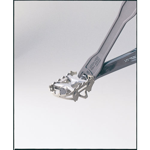 カタログ品番:C-200 特長:●クロムバナジウム鋼鍛造成型にパーカー仕上げのプロ用ペダルレンチ。●ハンドルに対して15°の角度を持たせた厚口タイプとストレートの薄口タイプのコンビネーション。 仕様:●サイズ(mm):15×15●全長(mm):310