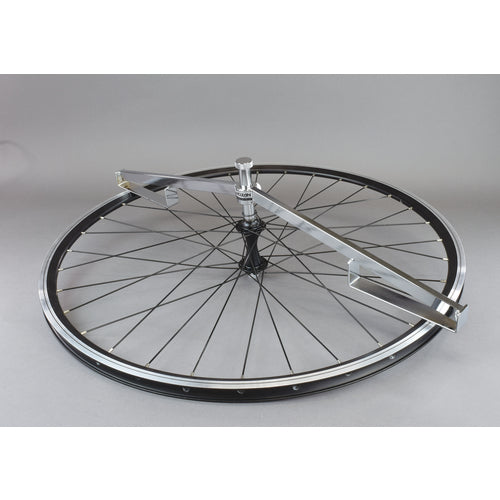 カタログ品番:C-335 特長:●ハブのオーバーロックナット寸法のセンターと組み上がったリムのセンターが一致しているかをチェックするゲージです。●センターボルト(A)をハブのロックナットに合わせ、リムを本体が密着する位置で、ロックボルト(B)を固定します。●そのまま、リムの反対側にゲージをあて、本体とリムおよびハブの隙間を調べます。 仕様:●適応範囲:18〜28インチ●全長:690mm
