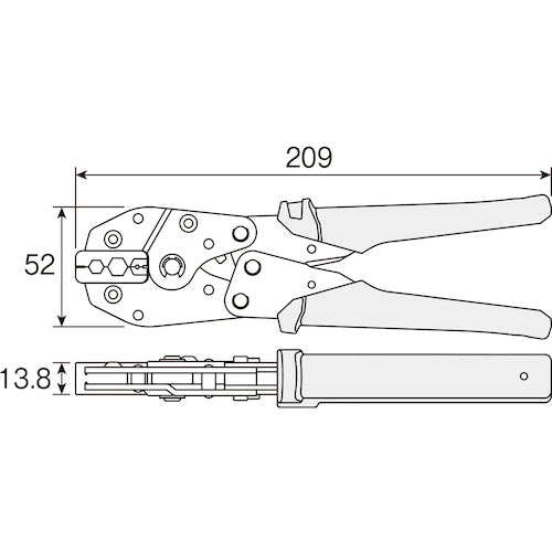 カタログ品番:P-741 特長:●計測器、コンピューターLAN、放送機器などに使われるBNC/TNC/BNCCコネクタ用の圧着工具です。●中心コンタクトとスリーブ(抜け止めリング)の圧着ができます。 用途:●中心コンタクトとスリーブ(抜け止めリング)の圧着に。 仕様:●全長(mm):209●適合端子外径サイズ(mm)中心コンタクト:1.75●適合端子外径サイズ(mm)スリーブ:6.8/9.0●対応コネクター外径サイズ:中心コンタクト→1.75mm/スリーブ:6.8/9.0mm 材質/仕上:●ダイス部:合金鋼