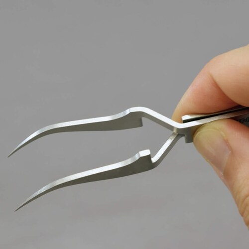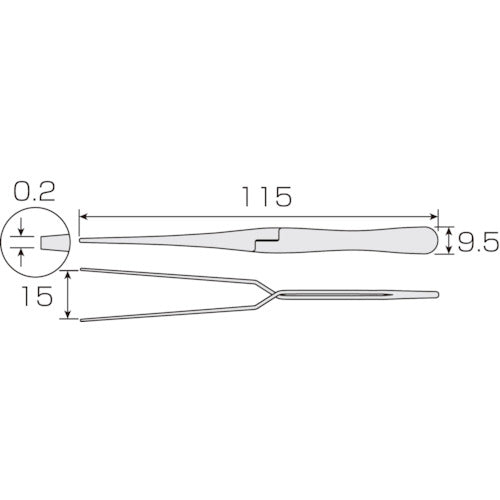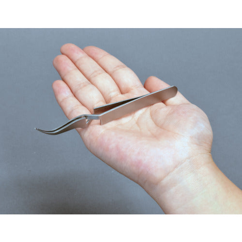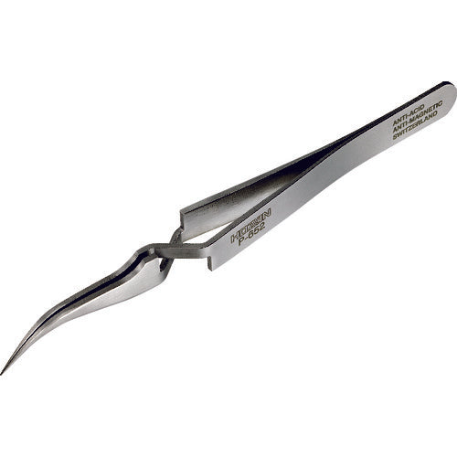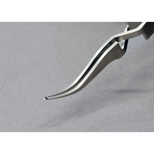 カタログ品番:P-652 特長:●先端精度にこだわった逆作用ピンセットです。●本体を握ると先端が開き、離すと閉じます。 用途:●磁気を嫌う精密機器の作業に。 仕様:●全長(mm):115●幅(mm):9.5●先端幅(mm):0.2●先端:先曲型 材質/仕上:●ステンレス(SUS316L) 注意:●ESD対策仕様品ではありません。