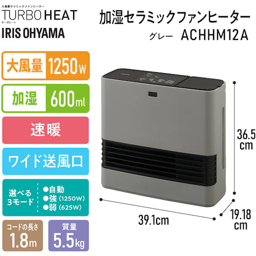 IRIS 296312 加湿セラミックファンヒーター グレー ACHHM12A-H 1 台