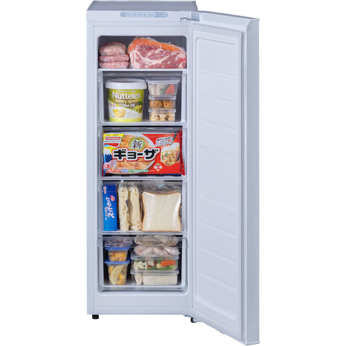 カタログ品番:IUSN-8A-W 特長:●電子レンジ1台分以下のスリムな冷凍庫です。●急冷モードがあり、急いで冷やしたいときに便利です。●ファン式設計なので、面倒な霜取りが不要です。●引き出し型のクリアトレーで、中身が見やすく取り出しやすいです。 用途:●食品等の冷凍に。 仕様:●定格内容積(L):80●間口(mm):356●奥行(mm):555●高さ(mm):996●電源(V):単相100●電源コード長さ(m):約1.9●年間消費電力量(50/60Hz):282kWh/年●温度調節:5段階+急冷●右開きタイプ●冷却性能(冷凍):-18℃以下●ドア開閉方向:右開き●温度調節:5段階+急冷●電源コード長さ:1.9m 材質/仕上:●鋼板●ポリスチレン(PS)●ABS等