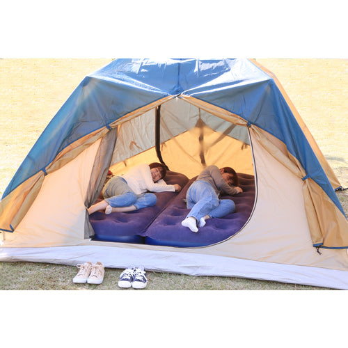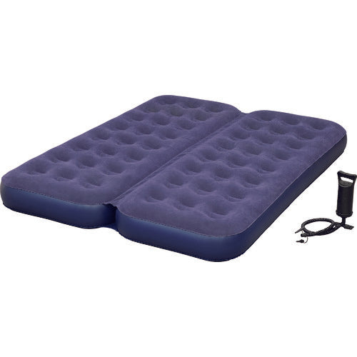 カタログ品番:ABD-2N 特長:●防災用品やレジャー用品として使用できるダブルサイズの簡易エアーベッドです。●簡単設置、コンパクト収納、いざという時すぐ使えます。●肌触りがよい表面加工と、厚さ22cmのボリュームで固い床でも底付き感を感じずに眠れます。●空気栓が2箇所に分かれており、2人で寝ても振動が伝わにくい仕様です。●専用ポンプで女性でも簡単に膨らませることができます。●押しても引いても空気が入るダブルアクションタイプです。 用途:●仮眠室、災害時、車中泊などに。 仕様:●色:ブルー●幅(mm):1500●長さ(mm):1910●厚さ(mm):220●タイプ:ダブル●耐荷重(kg):180 材質/仕上:●マット:PVC●ポンプ:ポリプロピレン、ポリエチレン セット内容/付属品:●専用ポンプ