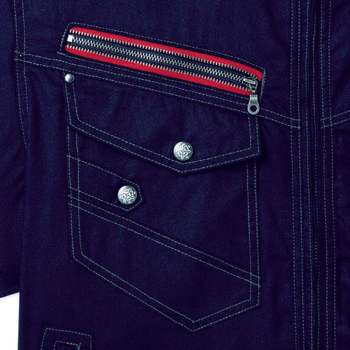 カタログ品番:52102-011-101 特長:●ワーカーのプライドに響くクールな1着です。●洗礼されたヨーロピアンテイストのデザインです。●消臭抗菌タイプです。●野帳も入る広いポケットを装備しています。 用途:●作業用。 仕様:●色:ネイビー●ウエスト(cm):101●股下(cm):78●ヒップ(cm):121●ワタリ幅(cm):40.5●消臭●抗菌●帯電防止素材使用●デザインファスナー●裾パンツ紐通し穴 材質/仕上:●ダイヤドビー(ポリエステル60%、綿40%)