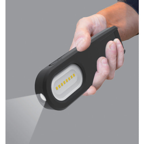 カタログ品番:PLRX-8C 特長:●スマートクリップ付きコンパクトLED作業灯です。●薄型、軽量コンパクトです。●クリップ、フック、マグネット、スタンドで使用できます。●High Low 2段階切替機能付きです。 用途:●作業用 仕様:●明るさ(lm):220●幅(mm):54●奥行(mm):27●高さ(mm):180●電源(V):3.7●最大点灯時間(h):2●充電時間:3●照射角(°):120、40●保護等級:IP20●電源:リチウムイオン充電池●最大点灯時間:約2時間(HIGH)●保護等級:IP20●使用光源:高輝度白色チップLED●色温度:6000K●充電電圧、電流:5V 1A●使用環境条件B:-10℃〜40℃●LED数:8+1個(スポット)●・照度(0.5m時):400lux(High) 200lux(Low) 700lux(スポット)●照射角:120°(HIGH/LOW) 40°(スポット) 材質/仕上:●本体:ABS樹脂●LEDカバー部:PC(ポリカーボネート)●グリップ部:POM(ポリアセタール) セット内容/付属品:●USB ケーブル 注意:●USBアダプターは付属しておりません。