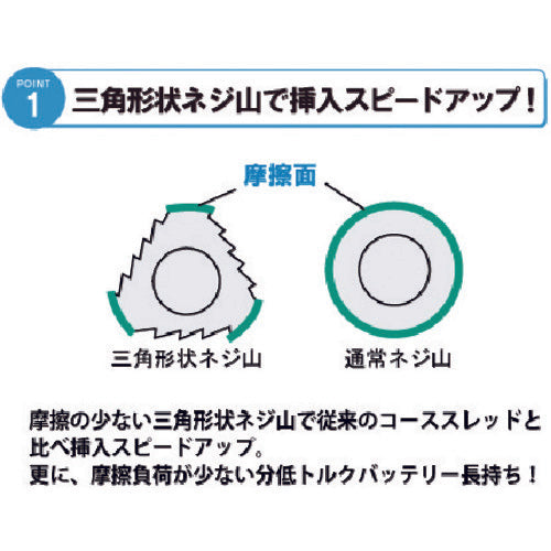 カタログ品番:TRC25 ZE 特長:●【特許取得のTR加工】摩擦の少ない三角形状ネジ山で、従来のコーススレッドと比べて挿入スピードアップします。●縦目ローレットへ切粉が収納される為、木材の膨張を防いで木割れを軽減します。●摩擦負荷が少ないため、低トルクでバッテリーが長持ちします。 用途:●木工用。 仕様:●ねじ部長さ(mm):24〜25●適合ドライバー:プラスNO.2●寸法(mm)d×全長:3.8×25●全ねじ 材質/仕上:●スチール●表面処理:三価ユニクロメッキ 注意:●極端な端部へのねじ込み、木材種類によっては軽減されない場合があります。