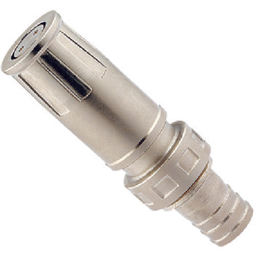 カタログ品番:5233-20 特長:●運動場、土木工事、解体作業用ノズルです。●先端部を回すことにより直射、噴霧、止水の切り替えができます。●完全止水はできません。 仕様:●適合ホース外径(mm):21●接続口径(タケノコ外径)(mm):21●全長(mm):143●カップリングを外すとG1の内ねじ(5223-40、5223-50はG1 1/2) 材質/仕上:●アルミニウム 注意:●完全止水はできません。
