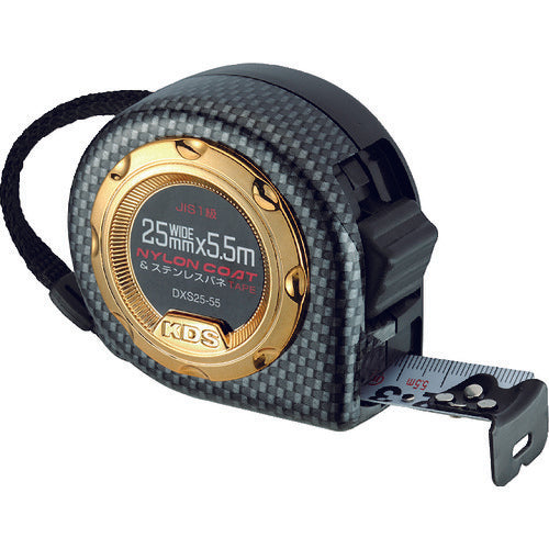カタログ品番:DXS25-55 特長:●ストッパーを一番下まで押し下げるとロックがかかります。●ストッパーを解除した時に、テープ引き込み速度の減速が可能です。●サビに強いステンレスばねを採用しています。 用途:●屋内外のハードな現場での寸法測定に。 仕様:●テープ長さ(m):5.5●テープ幅(mm):25●水平保持(m):2.4●目盛仕様:JIS1級両面メートル目盛●爪仕様:0点補正移動爪●0点補正移動爪:○●455ピッチ表示:○●ショックアブソーバー:あり●テープ色:ホワイト●本体寸法(mm):73×70×45●ショックアブソーバー付:○●移動爪●ロックタイプ●JIS1級●両面目盛●ベルトフック付●ブレーキ機構:あり●ショックアブソーバー:あり●455mmピッチ表示:あり 材質/仕上:●テープ:スチール●ばね:ステンレス●ケース:ABS樹脂