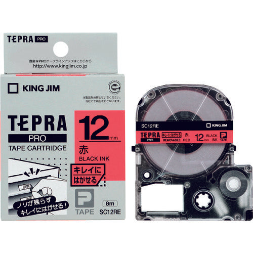 KING JIM 【純正】「テプラ」PROテープ 12mm キレイにはがせるラベル/赤ラベル/黒文字 長さ8m SC12-RE 1 個