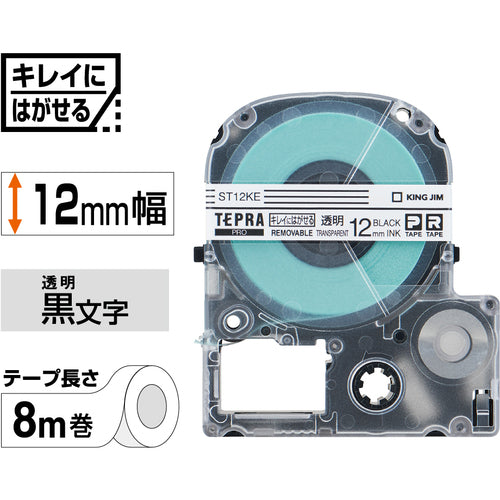 KING JIM 【純正】「テプラ」PROテープ 12mm キレイにはがせるラベル/透明ラベル/黒文字 長さ8m ST12KE 1 個
