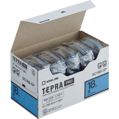 KING JIM 【純正】「テプラ」PROテープ 18mm エコパック(5個入り)/青ラベル/黒文字 長さ8m SC18B-5P 1 PK