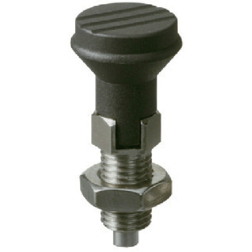 カタログ品番:NDX12LW-SUS 特長:●ノブの操作でノーズがストロークし、位置決めします。●ノブを引いた状態で90゚回転するとノーズが引っ込んだ状態でロック(固定)できます。 仕様:●インデックスプランジャー 材質/仕上:●本体:SUS303●ノブ:ポリアミド つや消しブラック●コイルバネ:SUS302WPA●ノーズ:SUS420 HRC53〜55 注意:●インデックスプランジャーをプレートへ完全にねじ込んで使用される場合は、プレート側のタップ穴に面取りを施してください。●北海道・沖縄運賃1500円