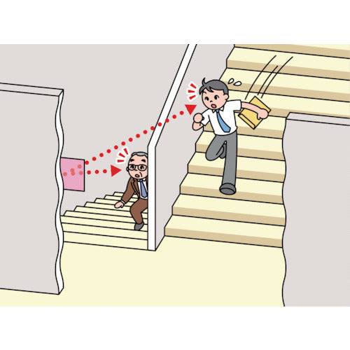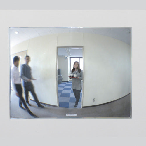 カタログ品番:FT34 特長:●目の高さに貼るだけでヒヤリ・ハットを解消します。●正面のミラーを見るだけで死角が自然と目に入り、通路の衝突防止に役立ちます。●T字路や階段の踊り場の衝突を防止します。 用途:●オフィス・工場・病院・公共施設など、あらゆる通路の衝突防止に。 仕様:●幅(mm):340●奥行(mm):4.1●高さ(mm):240●像大きさ(曲面R):280R相当●取付方法:強力両面テープ(裏面に貼付済み)●形状:角型●厚さ(mm):4.1●室内専用●左右用●両面テープ止め●ミラーの厚さ:4.1mm 材質/仕上:●ミラー:アクリル 注意:●オイルミストが発生する場所ではご使用できません。●屋外では使用できません。●室内でも日光が当たる場所では使用できません。