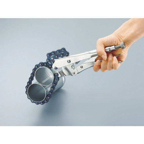 カタログ品番:510R 特長:●円形状や多角形状の部品をまわす、つかむなどに便利です。 仕様:●全長(mm):210●くわえられる管外径(mm):140●チェーン長さ(mm):450 材質/仕上:●特殊工具鋼
