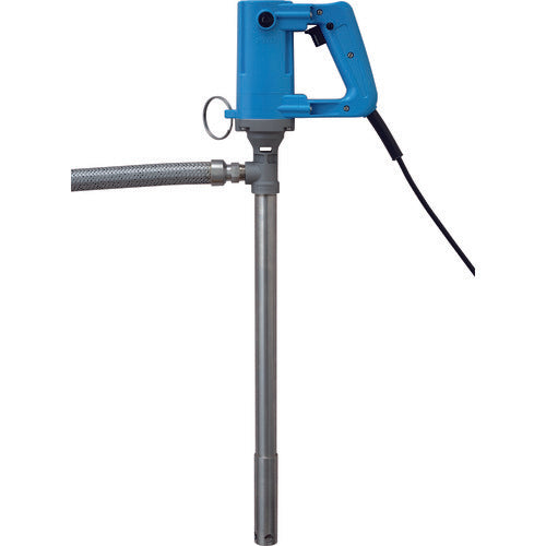 カタログ品番:HP-701 特長:●ポリ・ペール缶からの薬液移送に最適です。●スイッチはガン式のため、取手を握ったまま操作でき、取り扱い簡単です。●省電力モーターのため、経済的です。 用途:●溶剤・油。 仕様:●吐出量(L/min):25●全長(mm):680●揚程(m):5●電源(V):AC100●電源コード長さ(m):2.5●ホース:φ19×1000mm●電源コード長さ:2.5m●使用可能粘度:200mPa・S 材質/仕上:●本体:ステンレス(SUS316)●ホース:ステンレス(SUS304)●パッキン:フッ素樹脂など 注意:●空運転厳禁