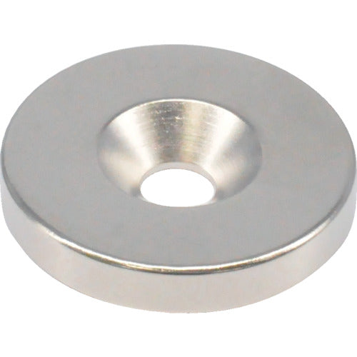 カタログ品番:1-NC24R 特長:●磁石の中で最強の磁場をもちます。 用途:●センサー、機構品の吸着用。 仕様:●表面磁束密度(T):0.34●吸着力(N):58.21●外径(mm):24●厚さ(mm):4●適合ねじ:M5●形状:丸型(皿穴付)●丸形 材質/仕上:●マグネット:ネオジム磁石