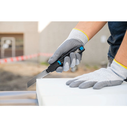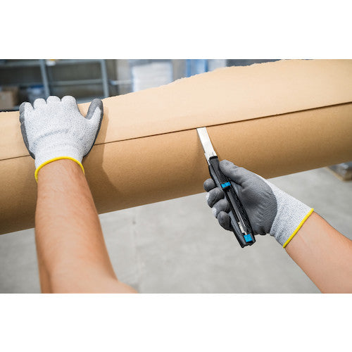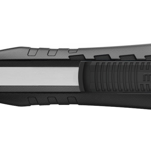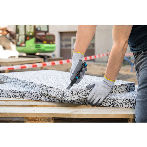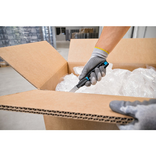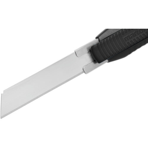 カタログ品番:383001 特長:●GSマークを取得したドイツ製の高品質な刃が自動的に戻る、安全性の高いセーフティカッターです。●刃が有効長最大78mmと非常に長く且つ良くしなるため水平に接触面に押し当てて使用できます。●刃がケースから出た状態でロックすることが出来るため連続使用に便利です。●7mm〜73mmで7段階で調整できます。●左右どちらの手でも快適に使用できます。 仕様:●全長(mm):170.5●刃厚(mm):0.50●適合替刃:79、179、379●刃厚:0.50mm●刃:標準刃(79) 材質/仕上:●本体:グラスファイバー強化プラスチック●刃:合金工具鋼