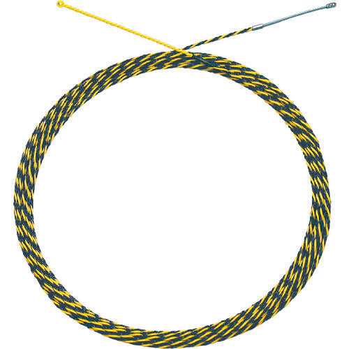 カタログ品番:MW-703I 特長:●樹脂製で安全性が高く、スチール、ワイヤーロープに比べ非常に軽く、取扱いが容易です。●ガイドワイヤー付リードヘッドにより、曲りも軽々通過します。●絶縁体リードヘッドにより短絡する心配がありません。●細いラインと太いラインを撚りあわせる画期的な構造で摩擦抵抗は1/3です。●黄色を撚り合わせているので暗い所でもよく識別できます。 用途:●電源の切ることのできない作業現場の通線に。 仕様:●全長(m):30●線径(mm):6.2●色:黒、黄色●最大安全荷重(kN):絶縁体部1.4・ワイヤー部3.4●形状:φ3mm+φ2.6mm×2本●絶縁体リードヘッド長:300mm、スチール製リードヘッド長:160mm 材質/仕上:●ポリエステル(PE)