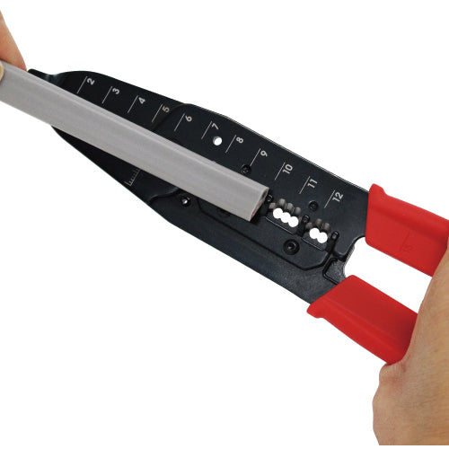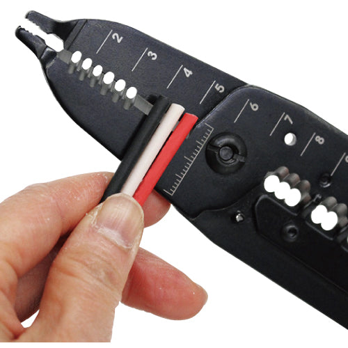 カタログ品番:MVA-1620 特長:●この1本で「切る」「測る」「剥ぐ」「曲げる」作業が可能です。●3芯同時ストリップ対応です。●バネ付なので、握りを緩めたときにハンドルが少し開き、内被(絶縁体)を傷つけずにストリップしやすくなっています。●バネは裏側のグリップに入っているため邪魔になりません。●グリップの裏面に15、20cmの目盛りがくっきりと入っています。●20mm目盛りが付いているので、人差し指で抑えたところで計測し、そのまま内被ストリップに人差し指を当てると20mmに剥けます。●電気工事士技能試験推奨工具です。 用途:●ケーブルの切断、外被(シース)および内被(絶縁体)の剥離、心線の曲げ作業などに。 仕様:●全長(mm):228●適合電線(mm):1.6×2芯/3芯、2.0×2芯/3芯●適合電線:VA・VVF線、EM・EEF線(エコ電線)●色:グリップ赤●幅(mm):95●奥行(mm):228●高さ(mm):14 材質/仕上:●本体:鉄●グリップ:エラストマー 注意:●エコ電線(EM-EEF線)はVVF線に比べて剥離荷重が重くなるため、1本ずつ剥いてください。