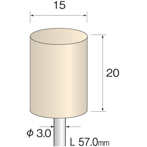 カタログ品番:GA2109 特長:●上質できめ細かい羊毛を高密度に圧縮したバフです。●研磨剤の保持力にも優れ効果的な研磨ができます。 仕様:●タイプ:平型・ソフト●外径(mm):15●幅(mm):20●軸径(mm):3.0●軸長(mm):37●最高使用回転数(rpm):30000●色:白●全長(mm):57.0●適合素材:セラミックス、ガラス、工具鋼、合金鋼、超硬合金、サーメット、一般鋼、ステンレス、アルミニウム、銅