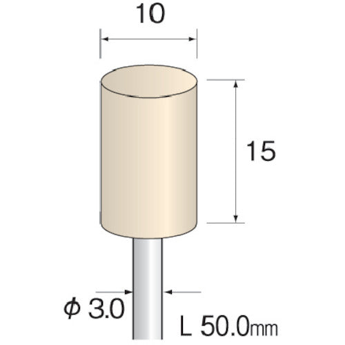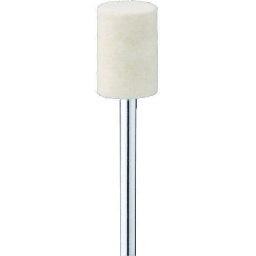 カタログ品番:GA2135 特長:●上質できめ細かい羊毛を高密度に圧縮したバフです。●研磨剤の保持力にも優れ効果的な研磨ができます。 仕様:●タイプ:平型・ハード●外径(mm):10●幅(mm):15●軸径(mm):3.0●軸長(mm):35●最高使用回転数(rpm):30000●色:白●全長(mm):50.0●適合素材:セラミックス、ガラス、工具鋼、合金鋼、超硬合金、サーメット、一般鋼、ステンレス、アルミニウム、銅