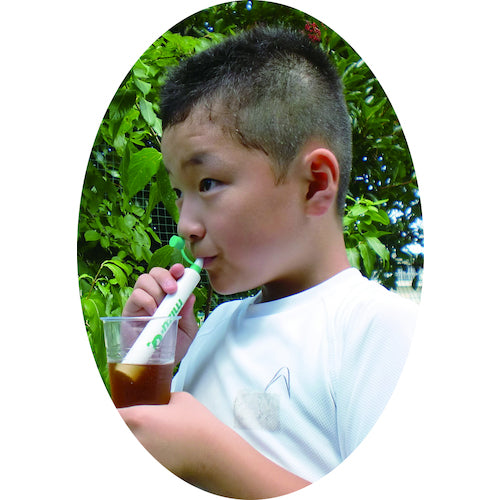 カタログ品番:MIZQ 特長:●原水に除菌剤を添加し、浄水ストローで飲用します。●コップ(200ml)500杯分の浄水ができます。●軽量、コンパクトなので避難袋のアイテムとして最適です。 用途:●災害および非常時の飲料・生活水の確保に。 仕様:●幅(mm):19●奥行(mm):19●高さ(mm):133●ろ過流量:0.05リットル/分●総ろ過量:約100リットル●粉末除菌剤使用(有効期限5年)ストロー部はコーラルサンド+銀添着粒状活性炭 材質/仕上:●PP(抗菌仕様)●粒状活性炭●銀添着活性炭●コーラルサンド(自然物質のみ) 注意:●化学物質や重金属類が含まれる水は浄水できませんので、原水の選定には十分注意してください。●60度以上の温水の浄水、海水の淡水化、硬水の軟水化はできません。●国内製のほとんどのPETボトルに装着できますが、一部メーカーのボトルには装着できないものがありますのでご注意ください。●川湖水を利用する場合、普段から魚が生息している水質の水を選定してください。●井戸水を利用する場合、定期的に水質検査を行っている井戸水を使用してください。