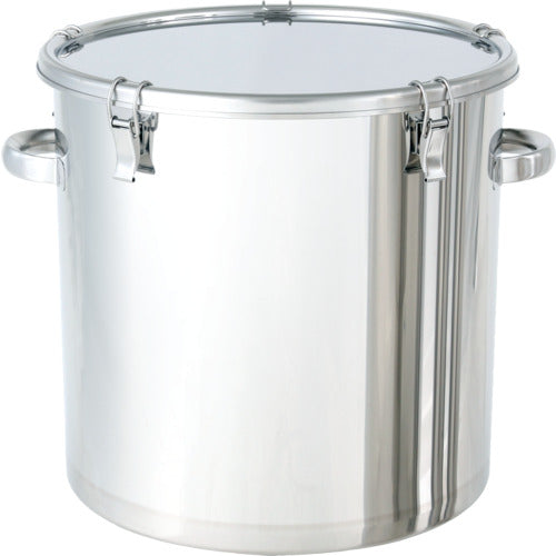 カタログ品番:CTH-47H 特長:●本体とフタの締め付けをキャッチクリップで行う密閉式容器です。●内外面バフ研磨仕上げです。●シリコンゴムパッキンを使用しています。●底面フラットタイプのため粉・液だまりがありません。 用途:●液体・粉体などの保存容器。 仕様:●容量(L):100●直径(mm):507●高さ(mm):606●内径(mm):470●深さ(mm):600●蓋タイプ:密閉蓋(クリップ式)●取手:あり●蛇口有無:なし●バルブ有無:なし●フタ付●食品衛生法適合品●パッキンは別作にて各種対応可能です(バイトンゴム・CR・NBR・EPDM)●A型パッキン付属 材質/仕上:●容器本体・フタ:ステンレス(SUS304)●パッキン:シリコンゴム(食品衛生法適合)