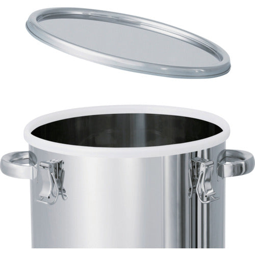カタログ品番:CTH-24 特長:●本体とフタの締め付けをキャッチクリップで行う密閉式容器です。●内外面バフ研磨仕上げです。●シリコンゴムパッキンを使用しています。●底面フラットタイプのため粉・液だまりがありません。 用途:●液体・粉体などの保存容器。 仕様:●容量(L):10●直径(mm):269●高さ(mm):247●内径(mm):240●深さ(mm):240●蓋タイプ:密閉蓋(クリップ式)●取手:あり●蛇口有無:なし●バルブ有無:なし●フタ付●食品衛生法適合品●パッキンは別作にて各種対応可能です(バイトンゴム・CR・NBR・EPDM)●A型パッキン付属 材質/仕上:●容器本体・フタ:ステンレス(SUS304)●パッキン:シリコンゴム(食品衛生法適合)