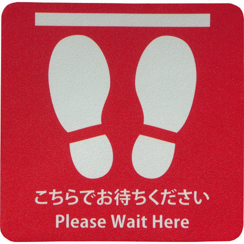 カタログ品番:PNSPA-SOCIAL-KCRA 特長:●裏紙をはがして貼るだけで簡単に施工できます。●縞鋼板などの凹凸面にもプライマー等による下地処理が不要でそのまま貼ることができます。●カーボンニュートラルガス使用により、従来比61%排出量を削減しました(製造時)。 用途:●レジ前の列、店舗カウンター前の待機点(ソーシャルディスタンス)の表示に。 仕様:●表示内容:こちらでお待ちください Please Wait Here●取付仕様:粘着シール●縦(mm):300●横(mm):306●粘着力:20N/25mm●引張強度:147N/25mm●取付方法:貼付タイプ●引張強度:147N/25mm●粘着力:20N/25mm 材質/仕上:●基材:アルミニウム●粘着剤:アクリル系●人造砥粒(酸化アルミニウム)