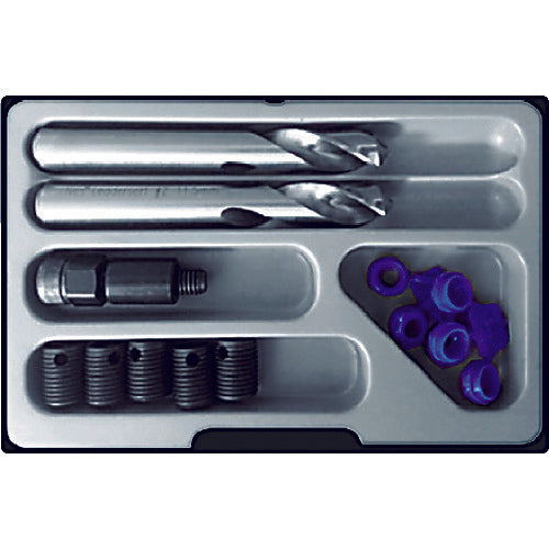 カタログ品番:LS10220 特長:●めねじの補修にタップを使わない画期的なシステムです。●下穴に直接、ねじ切りインサートでタッピングしながらインサートを挿入する際、先端にプラスチックガイドを付けることによりまっすぐにインサート挿入ができます。(PAT.PEND) 用途:●めねじの補修、補強に。●メートルねじ用。 仕様:●使用範囲:M5×0.8●下穴ドリル寸法(mm)鉄用:7.0●下穴ドリル寸法(mm)非鉄用:6.9●止まり穴最小深さ(mm):12 セット内容/付属品:●下穴用ドリル(アルミ、鋳物用1本)(鉄鋼用1本)●セルフタッピングインサート5本●プラスチックガイド6個●ドライブボルト&ナット各1●スリーブ1