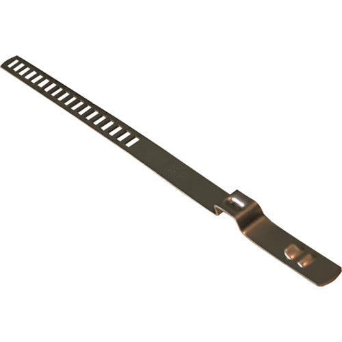 カタログ品番:15900002 特長:●広範囲の径に対応して使用できる加締めバンドです。●フックのかける位置によって加締め範囲を調整します。●半径方向からの組付けが可能です。●納入状態はフラット形状になっています。 用途:●ドライブシャフトブーツなどの締結に。●自動車用。●一般産業用。 仕様:●最大径(mm):50●最小径(mm):25●バンド幅(mm):7●厚さ(mm):0.8●最大推奨加締め荷重(N):2400 材質/仕上:●ステンレス(UNS S30400) 注意:●加締めにあたっては、イヤークランプ用マニュアルハンドピンサーをご使用ください。