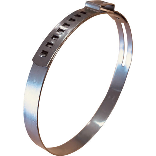 カタログ品番:16300028 特長:●広範囲の径に対応して使用できる加締めバンドです。●フックのかける位置によって加締め範囲を調整します。●半径方向からの組付けが可能です。 用途:●ドライブシャフトブーツなどの締結に。●自動車用。●一般産業用。 仕様:●最大径(mm):62●最小径(mm):53.5●バンド幅(mm):7●厚さ(mm):0.6●最大推奨加締め荷重(N):2400 材質/仕上:●ステンレス(UNS S30400) 注意:●加締めにあたっては、イヤークランプ用マニュアルハンドピンサーをご使用ください。