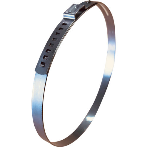 カタログ品番:16300033 特長:●広範囲の径に対応して使用できる加締めバンドです。●フックのかける位置によって加締め範囲を調整します。●半径方向からの組付けが可能です。 用途:●ドライブシャフトブーツなどの締結に。●自動車用。●一般産業用。 仕様:●最大径(mm):92●最小径(mm):83.5●バンド幅(mm):7●厚さ(mm):0.6●最大推奨加締め荷重(N):2400 材質/仕上:●ステンレス(UNS S30400) 注意:●加締めにあたっては、イヤークランプ用マニュアルハンドピンサーをご使用ください。
