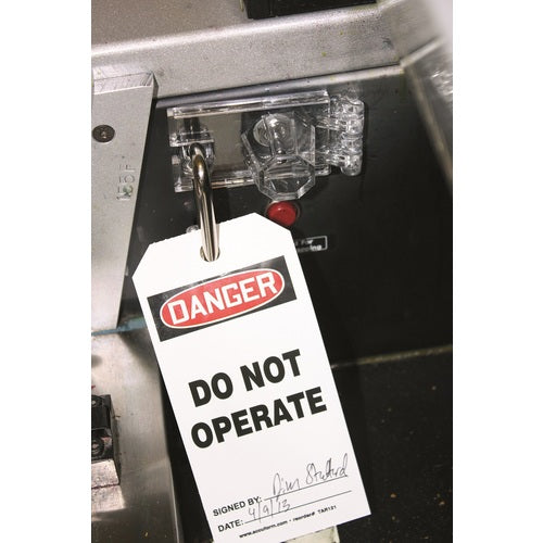 カタログ品番:PSL-1001 特長:●トグルスイッチにすばやく簡単に取り付けることができます。●透明ポリカーボネート製なので、スイッチの位置や表示等を取り付け後にも目視で確認できます。●透明で強靭なVHBテープで固定するので、安全な接着が可能です。●未使用時にはカバーは外して保管することができます。 用途:●トグルスイッチのロックアウト 仕様:●色:透明●ケース寸法(mm)幅:44.5●ケース寸法(mm)奥行:88.9●ケース寸法(mm)高さ:31.8●ジョー内径(mm):なし●フック:なし●取付可能スイッチ(mm)高さ:トグルスイッチ●取付可能スイッチ(mm)幅:19.1●取付可能スイッチ(mm)厚さ:25.4●A(mm):なし●取付パドロックシャックル径(mm):Φ8.9●取付方法:透明粘着テープ●最大適用トグルスイッチ寸法:高さ25.4mm×スイッチ回りΦ19.1mm 材質/仕上:●ポリカーボネート 注意:●キャンセル不可商品です。