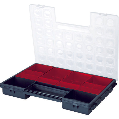 カタログ品番:ORGC400TCZAPG001 特長:●中のボックスは取り外し可能です。●ボックスはフタを閉じると、ケース仕切りで固定され動きません。●同じケースを蝶番で繋ぎ合わせて携帯できます。 仕様:●色:ブラック(レッド)●外形寸法(mm)間口:385●外形寸法(mm)奥行:283●外形寸法(mm)高さ:50●有効内寸(mm)間口:347●有効内寸(mm)奥行:252●有効内寸(mm)高さ:45●南京錠(別売):取付不可●容積(L):3.3●付属ケース:14個●仕切あり●樹脂製 材質/仕上:●ポリプロピレン(PP) セット内容/付属品:●ボックス×14個●蝶番×1セット
