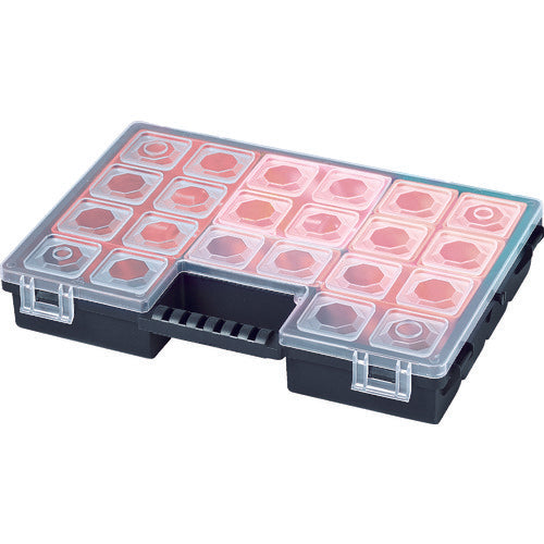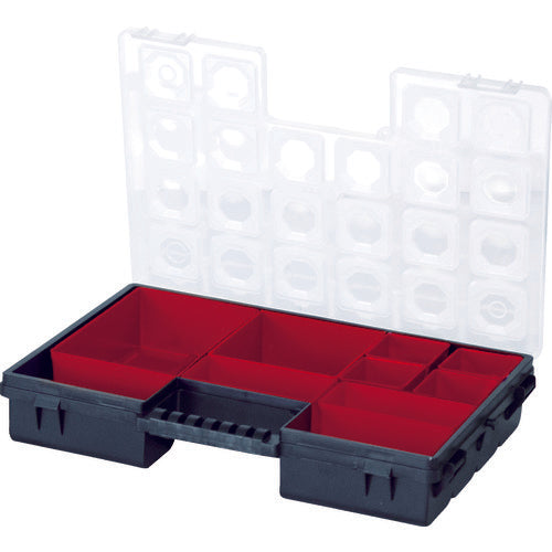 カタログ品番:ORGC300TCZAPG001 特長:●中のボックスは取り外し可能です。●ボックスはフタを閉じると、ケース仕切りで固定され動きません。●同じケースを蝶番で繋ぎ合わせて携帯できます。 仕様:●色:ブラック(レッド)●外形寸法(mm)間口:284●外形寸法(mm)奥行:192●外形寸法(mm)高さ:50●有効内寸(mm)間口:260●有効内寸(mm)奥行:168●有効内寸(mm)高さ:45●南京錠(別売):取付不可●容積(L):1.8●付属ケース:8個●仕切あり●樹脂製 材質/仕上:●ポリプロピレン(PP) セット内容/付属品:●ボックス×8個●蝶番×1セット