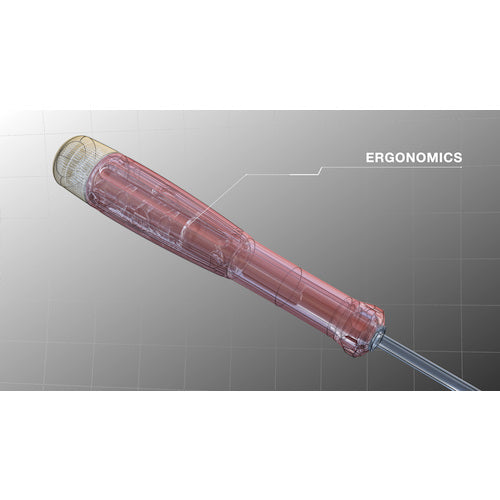 カタログ品番:8128.3.0-150 特長:●濡れた手で握っても滑りにくく、オイル・ガソリンに耐性があり、汚れてもきれいに落とせます。 仕様:●刃先:3.0●軸長(mm):150●全長(mm):243●グリップエンド:黒色