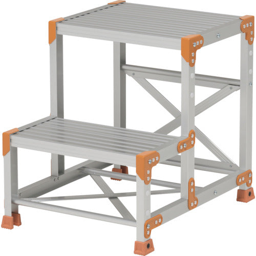 カタログ品番:FGN-2560-25 特長:●豊富なラインナップを揃え現場ニーズに応える作業用踏台です。●表面処理が高級感のあるオールアルマイト仕上げです。●踏ざん奥行を250mmにした事でより安全に昇降しやすくなっております。 用途:●工場・倉庫などでの作業用、高所作業用に。 仕様:●最大使用質量(kg):150●段高(mm):300●天板高さ(m):0.6●天板寸法(mm):500×400●設置寸法(mm)間口:518●設置寸法(mm)奥行:678●段数(段):2●踏ざん踏面幅(mm):250●組立式 材質/仕上:●本体:アルミ合金
