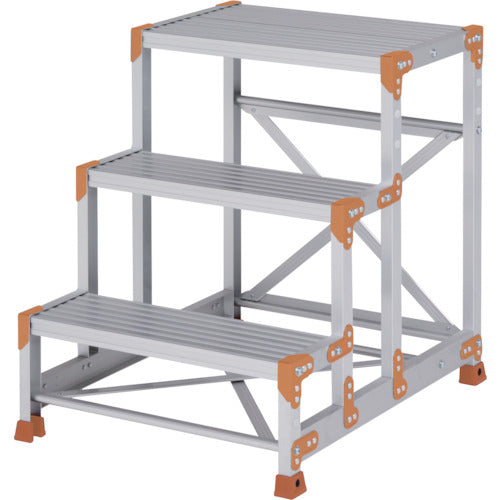カタログ品番:FGN-3675 特長:●豊富なラインナップを揃え現場ニーズに応える作業用踏台です。●表面処理が高級感のあるオールアルマイト仕上げです。 用途:●工場・倉庫などでの作業用、高所作業用に。 仕様:●最大使用質量(kg):150●段高(mm):250●天板高さ(m):0.75●天板寸法(mm):600×400●設置寸法(mm)間口:618●設置寸法(mm)奥行:831●段数(段):3●踏ざん踏面幅(mm):200●組立式●踏ざん幅面幅:200mm 材質/仕上:●本体:アルミ合金