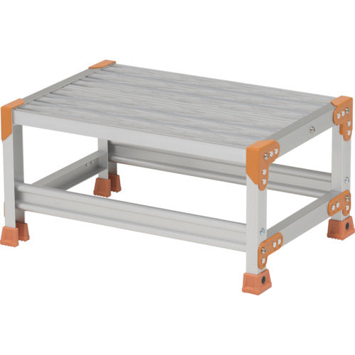 カタログ品番:FGR-1630 特長:●豊富なラインナップを揃え現場ニーズに応える作業用踏台です。●表面処理が高級感のあるアルマイト仕上です。(支柱のみ)●踏ざん踏面がグレーチング仕様の為、排水性・通気性に優れ幅広い現場でご使用できます。 用途:●工場・倉庫などでの作業用、高所作業用に。 仕様:●最大使用質量(kg):150●天板高さ(m):0.3●天板寸法(mm):600×400●設置寸法(mm)間口:618●設置寸法(mm)奥行:425●段数(段):1●天板色:シルバー●踏面タイプ:グレーチング●踏ざん踏面幅(mm):200●組立式アルミ製作業台(グレーチングタイプ) 材質/仕上:●本体:アルミ合金