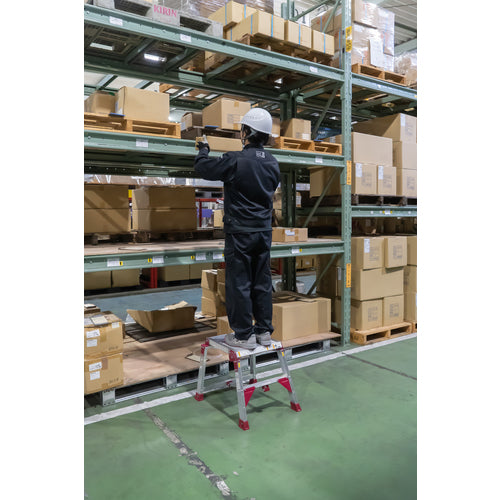 カタログ品番:DXG-47 特長:●ワンタッチで折りたためる簡単な開閉操作です。 用途:●現場作業に。 仕様:●最大使用質量(kg):150●段高(mm):235●天板高さ(m):0.47●天板寸法(mm):407×400●設置寸法(mm)間口:569●設置寸法(mm)奥行:617●段数(段):2●踏ざん踏面幅(mm):43●収納時全長(m):0.86●収納時寸法(mm)幅×奥行×高さ:860×570×125●完成品 材質/仕上:●アルミ合金