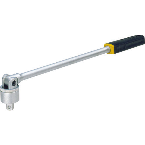 カタログ品番:83090 特長:●ラチェット部とグリップを一直線にして早回し後、本締めはアングルで、といった作業が非常に簡単に行える便利なフレックスラチェットです。●重作業も効率良く行えます。(〜50Nm)●回転方向の切り替えはヘッド上部のリングで行います。 用途:●各種ソケットを回す用に。 仕様:●歯数(枚):60●差込角(mm):凸12.7●全長(mm):430