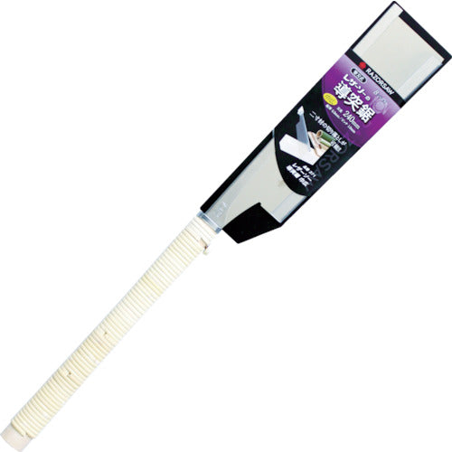 カタログ品番:371 特長:●3mmの超薄刃は鋭い切れ味と鉋仕上が必要としない切口を実現しました。●2寸角の材料まで切断できます。 用途:●精密(仕上げ)加工用。 仕様:●刃長(mm):240●全長(mm):600●刃ピッチ(mm):1●導突鋸巾広●衝撃焼入れ●無電解ニッケルメッキ 材質/仕上:●刃:炭素工具鋼●柄:木・籐(371)、エラストマ樹脂(374)