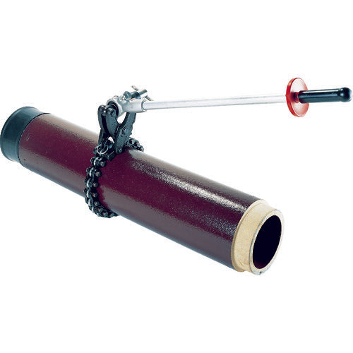 カタログ品番:32900 特長:●頭上や地中の既設管の切断に最適です。●ラチェット操作ハンドルを管と平行に操作するため、作業スペースを取りません。●ハンドガードの採用で切断時に施工者の手を保護します。 用途:●陶管、ねずみ鋳鉄管、セメント管の切断に。 仕様:●切断能力(mm):40〜150●全長(mm):840●モデル:246●切断能力(インチ):1 1/2〜6 注意:●石綿管は切断できません。●能力は呼び寸法です。●チェーンを締めつけることでチェーンに付属の刃で管を割るカッターのため、鋼管にはご使用いただけません。●切断能力は管の種類、手動・電動により異なります。