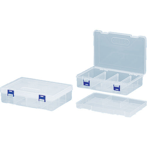 カタログ品番:RT-240-C 特長:●深底タイプでたっぷり収納することが可能です。●蝶番、バックルはオール別部品を使用し、耐久性は抜群となっております。●仕切板ロック機能付です。 用途:●小型の工具収納、細かい部品、端子などを収納可能。 仕様:●色:クリア●外形寸法(mm)間口:234●外形寸法(mm)奥行:168●外形寸法(mm)高さ:62●有効内寸(mm)間口:222●有効内寸(mm)奥行:150●有効内寸(mm)高さ:33●タイプ:可動仕切●仕切板3枚付●中皿1枚付●仕切あり●樹脂製 材質/仕上:●ポリプロピレン(PP)