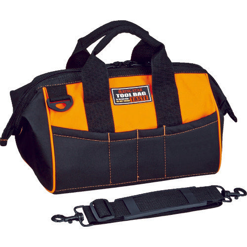 カタログ品番:TBT-3300-OR 特長:●センスが光るデザイン性の高いツールバッグです。●フルオープンで取り出しやすいツールバッグです。●大口開口部で出し入れ簡単にできます。 用途:●工具類の収納。 仕様:●色:オレンジ●幅(mm):330●奥行(mm):230●高さ(mm):230●外形寸法(mm)奥行:230●外形寸法(mm)間口:330●外形寸法(mm)高さ:230●内ポケット10個付●外ポケット5個付●ショルダーベルト付●ショルダー付 材質/仕上:●ポリエステル